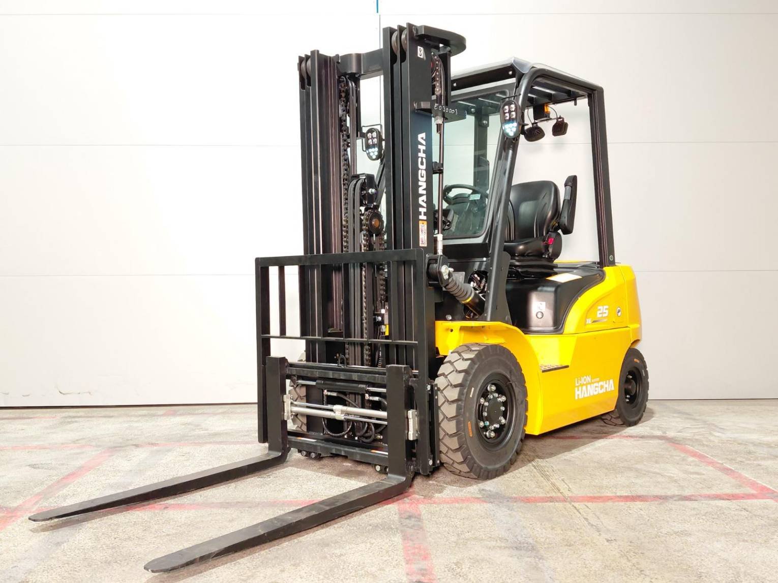 Bateria Covered roof Posicionador de garfos 4 vias hidráulico Para-brisas dianteiro LED road lighting Guarda de carga Panoramic rearview mirror Rear blue spot Rear work lights Reported sideshift Reverse signal Strobe beacon USB plug |