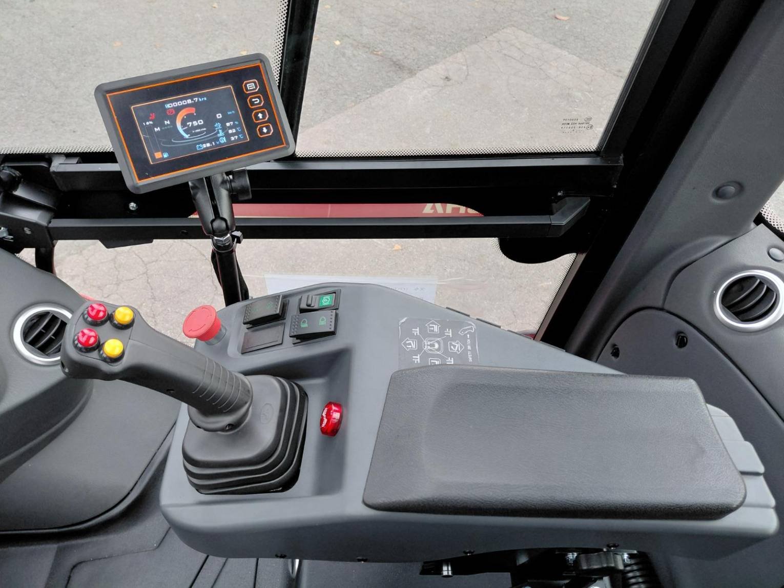 Deslocamento lateral Posicionador de garfos 4th valve inlet on fork carriage Heated cabin Iluminação de estrada Rear work lights Rear blue spot Strobe beacon Panoramic rearview mirror USB plug |