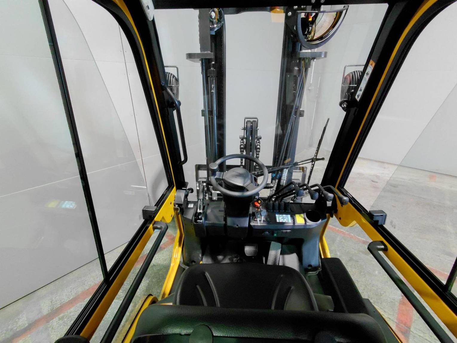Reported sideshift Posicionador de garfos 4th valve inlet on fork carriage Covered roof Iluminação de estrada Rear work lights Rear blue spot Strobe beacon Panoramic rearview mirror USB plug Heated cabin |