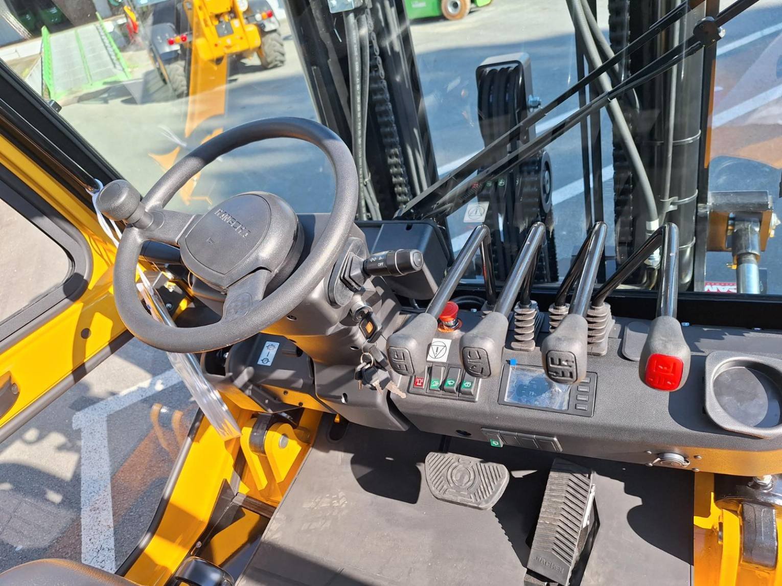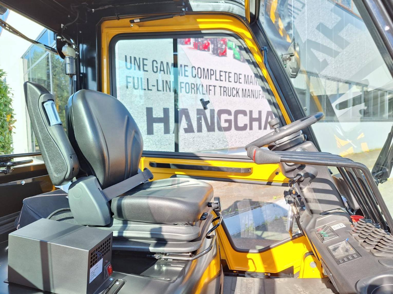 | Detalhes | XE50i à 600mm tablier classe 4 ** TDL Positionneur de fourches CAM Chauffage pour cabine Siège SC29 avec microswitch et accoudoir Blue spot Ar Contrôle de présence Prise USB Rétro panoramique Feu de travail arrière Batterie Lithium 80V/ 560Ah garantie 5 ans ou 10.000hrs Chargeur Lithium intégré |