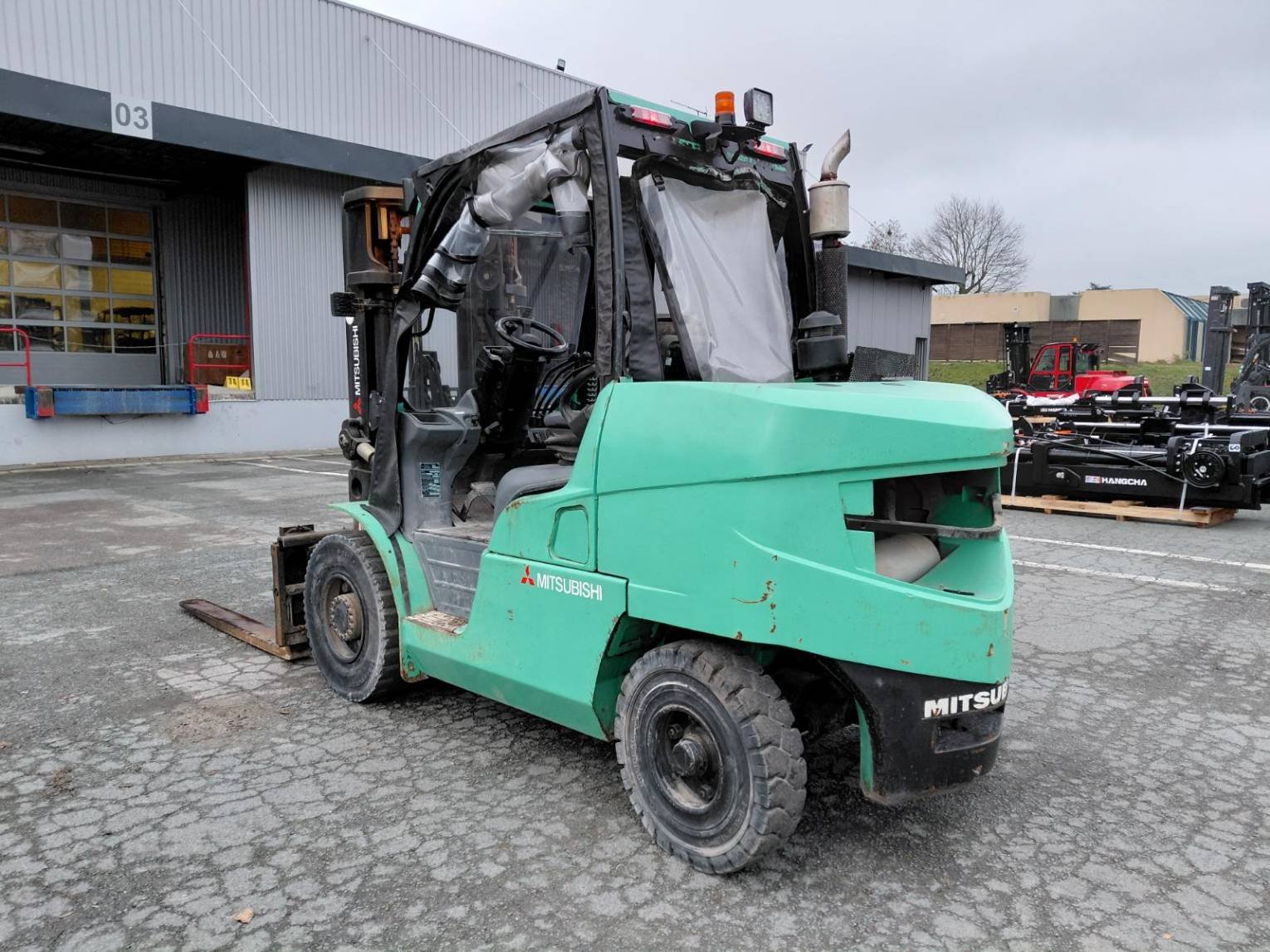 Covered roof Electric brake Flexible doors Posicionador de garfos 4 vias hidráulico Para-brisas dianteiro LED road lighting Para-brisas traseiro Rear work lights Reverse signal Deslocamento lateral Strobe beacon Vertical exhaust |